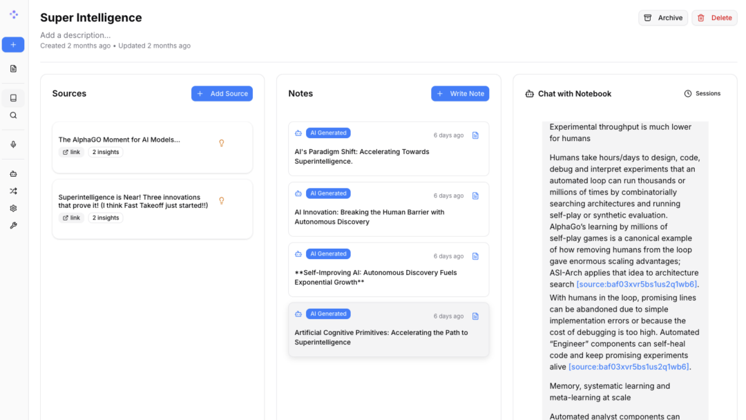 它不仅具备类似 NotebookLM 的文档问答和引用功能,还提供了高级的播客生成工具,支持创建多达 4 位演讲者的多角色对话,还能对脚本进行精细控制。